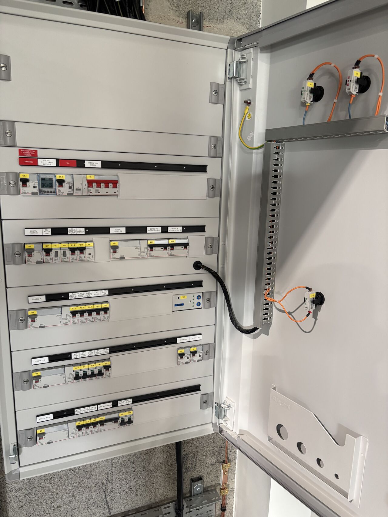 Les projets menés en 2025 illustrent la diversité de nos compétences. Effectivement, nous maîtrisons aussi bien la rénovation de bâtiments existants que les constructions neuves. Notre expertise couvre l’ensemble des lots électriques : courants forts, courants faibles, systèmes de sécurité et gestion technique du bâtiment.