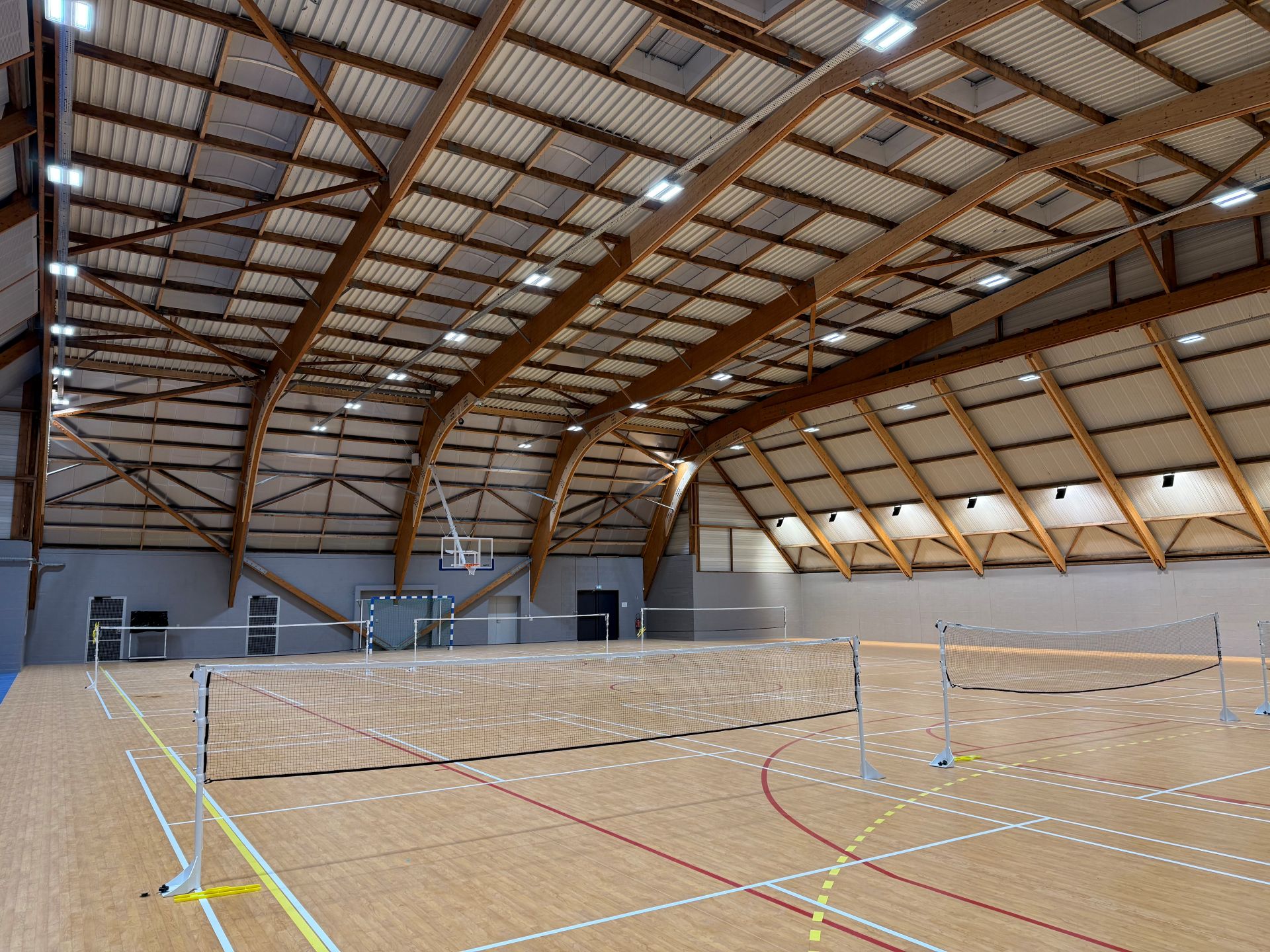 Les projets du Complexe Sportif d’Éventard et du Tribunal de Baugé représentent des chantiers parmi les plus ambitieux de notre année 2025. Notre mission englobait la réfection totale des installations électriques de ces bâtiments existants. Concrètement, nous avons procédé au renouvellement complet de l’éclairage et des prises de courant, garantissant ainsi une mise aux normes rigoureuse.