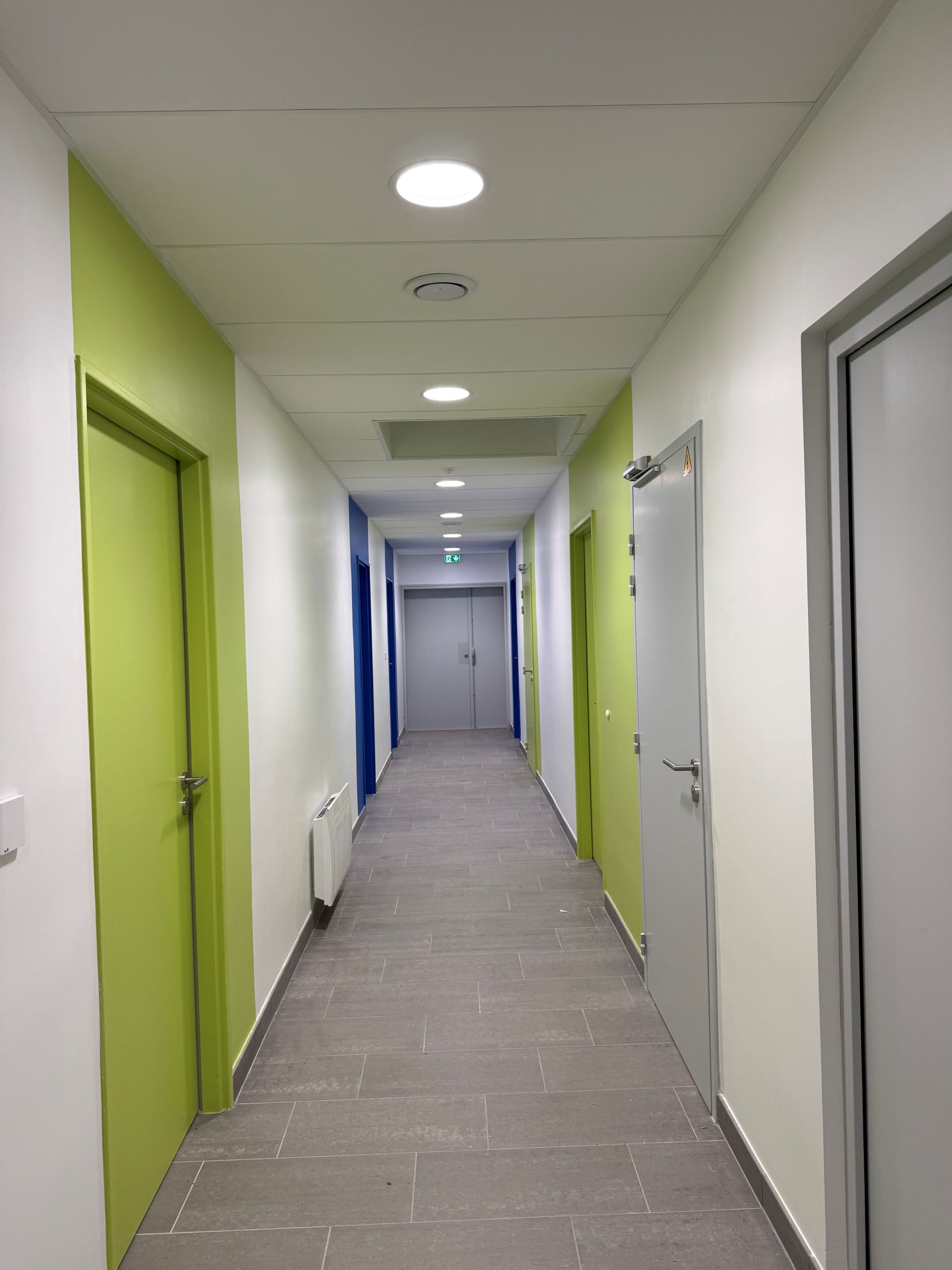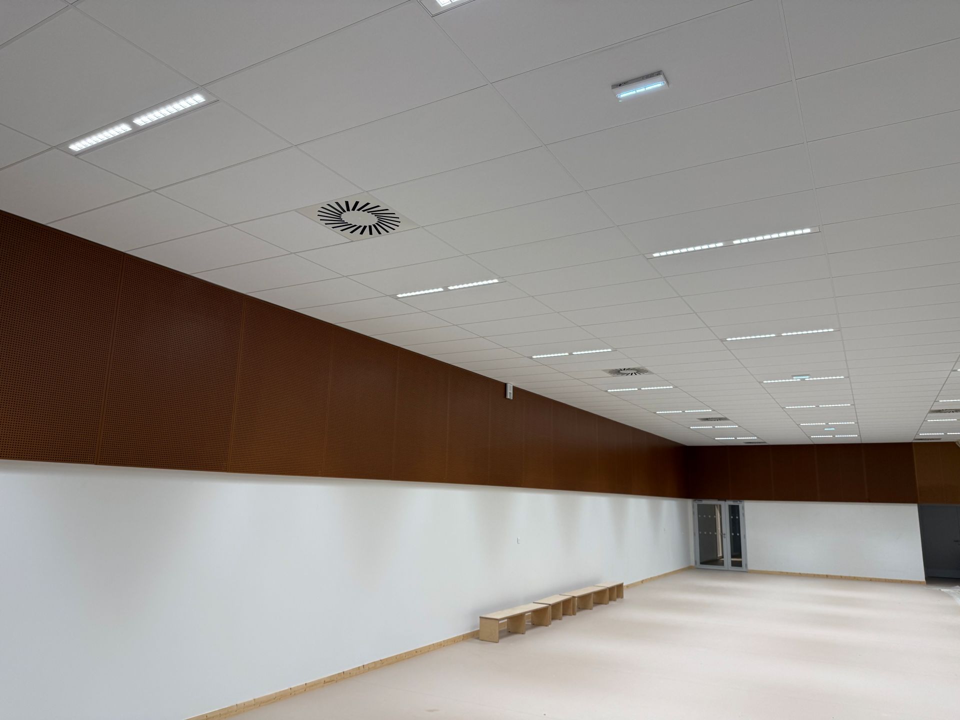 Ce type d’installation requiert une connaissance approfondie des normes d’éclairement et de sécurité applicables aux établissements recevant des jeunes. Par conséquent, notre bureau d’études a dimensionné précisément l’installation pour garantir un éclairage uniforme et adapté aux différentes zones.