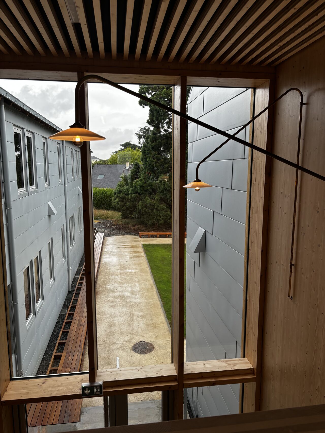 D’autre part, l’éclairage extérieur contribue à la valorisation de l’établissement tout en répondant aux exigences de sécurité des établissements d’enseignement. Notre intervention a pris en compte les problématiques d’efficacité énergétique, privilégiant des solutions d’éclairage LED performantes et durables.