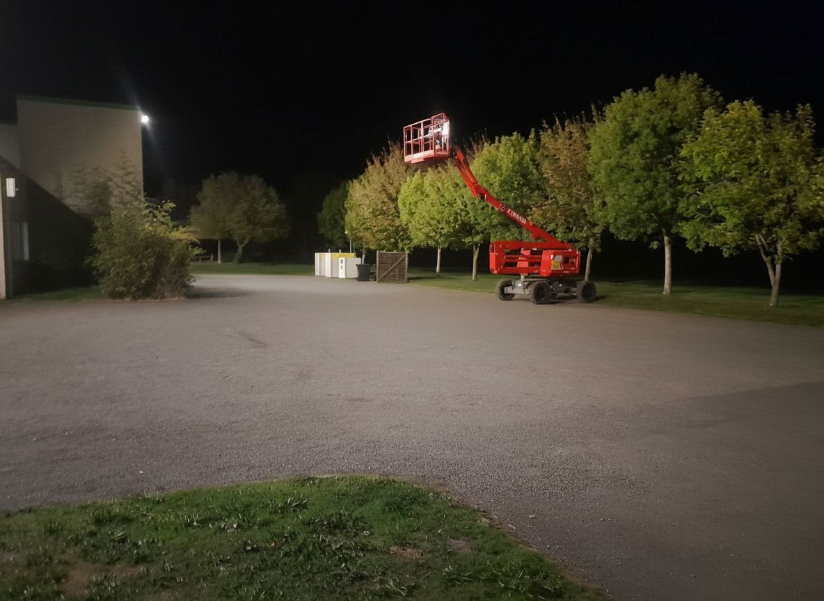 Pour la Maison Familiale Rurale (MFR) Les Sources à La Meignanne, nous avons réalisé l’installation d’un système d’éclairage extérieur complet. Ce projet ciblait spécifiquement le pourtour du bâtiment ainsi que l’ensemble du parking. D’une part, cette installation améliore significativement la sécurité des élèves et du personnel lors des déplacements nocturnes.